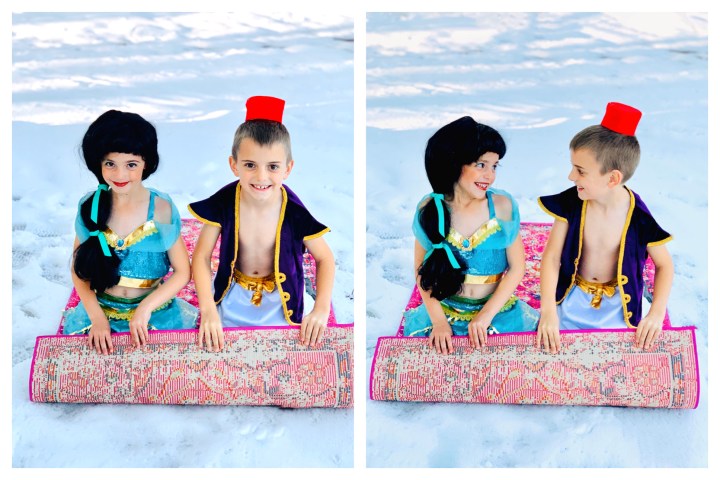 I was planning on wrapping myself in a carpet and calling it a day but I “forgot it at home.” Ask me if I feel bad for bundling up meanwhile Johnny had to got to trick-or-treat in spandex in the snow? I mean, have you ever seen a cuter Iago? Lookin good, babe.