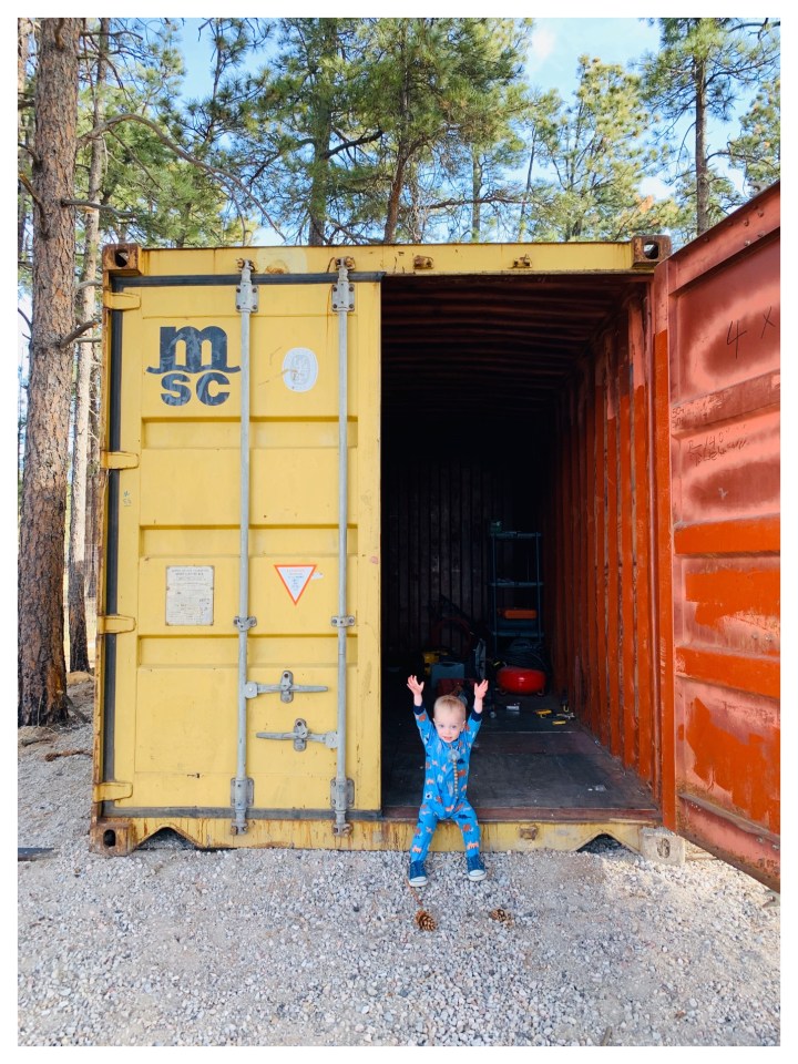 When we moved from our home in California, what we lost in square footage we gained in acreage! Because our garage had become kind of a storage unit of sorts, Johnny decided he wanted to get some shipping containers. We learned after our first glorious summer of thunderstorms that Colorado loves surprise hail storms. The word “weather” here has a completely different meaning. It’s pretty spectacular! Needless to say, we need to park our cars in the garage.