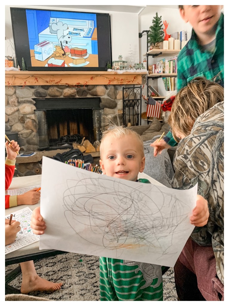 We made a total of 4 pies, Great Grandma Gigi’s cranberry jello, and horseradish dip (it’s tradition). I’ll admit, baking with my kids is something I wish I was better at. I’m too much of a “neat and tidy cook.” I can’t stand messes, so I take a lot of deep breaths and remind myself this is building memories for them. I reeeally hope their memories are not of a stressed out, impatient mama. Tip: put on a Fred and Ginger classic while baking. Works like a charm. Also, quiz then on fractions with measuring cups and call it “math!” #homeschool