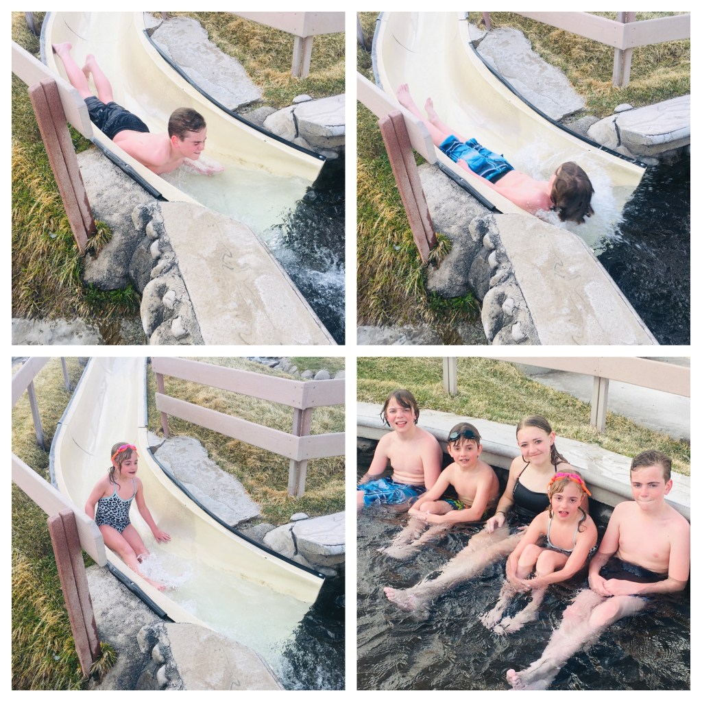 The big four spent a week with Uncle Jim and Aunt Peggy who spoiled them rotten! They then took them swimming at the local hot springs pool. They didn’t want to come home!