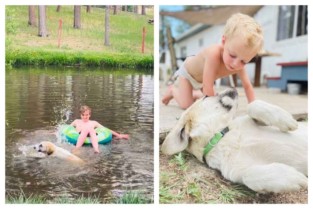 Bruce spends his days swimming in the pond, wrestling with Snow and not fetching balls the kids throw for him. He’s not that kinda dog. Sweet, playful boy has been a perfect addition to our little farm.
